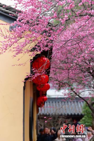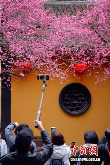 (新春走基层)浙江湖州铁佛寺百年六瓣红梅迎春绽放 引客打卡